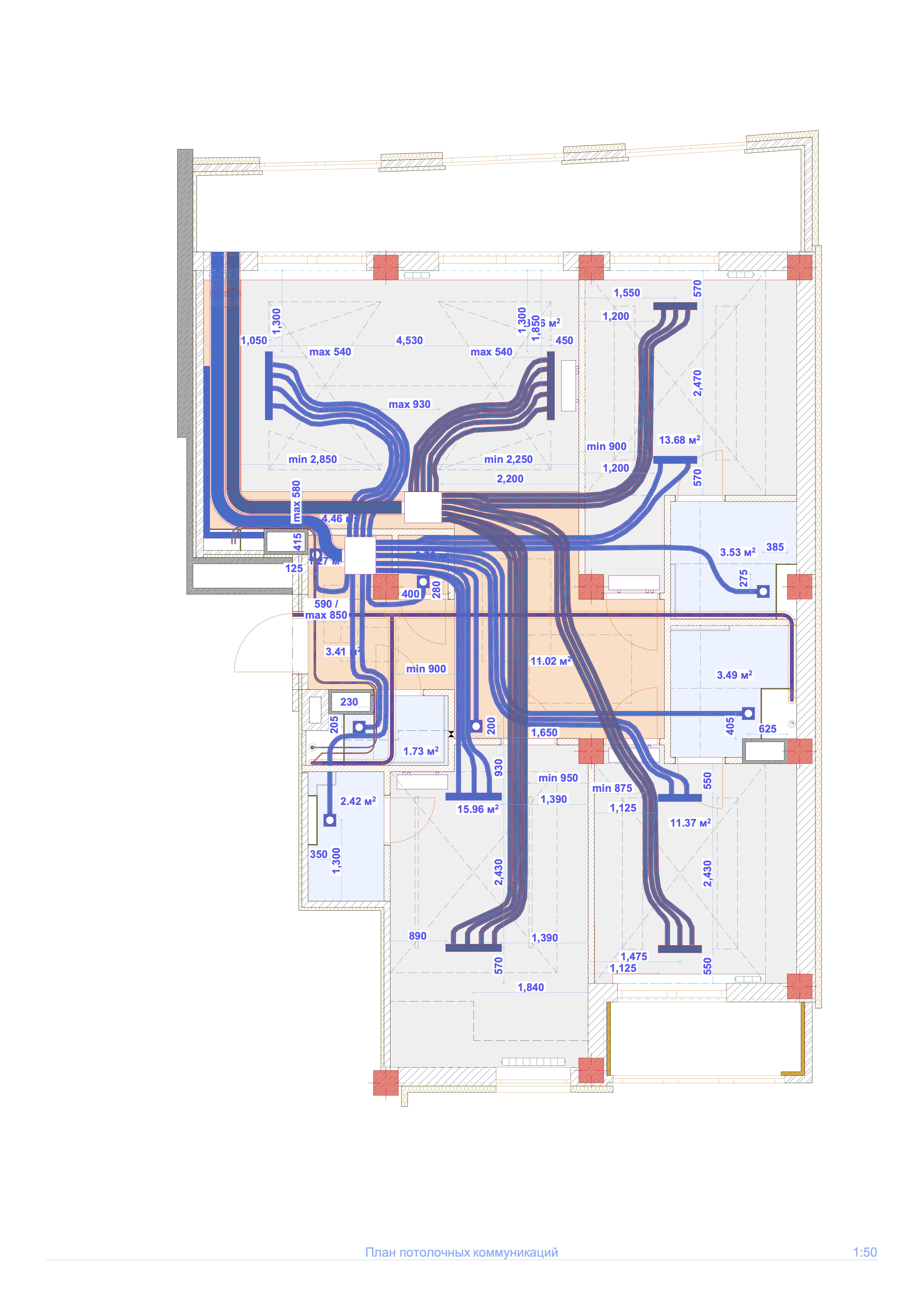 ✅ Этапы: Черновой этап (разводка вентиляции и трасс кондиционеров) занял около 2 недель.